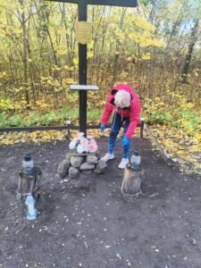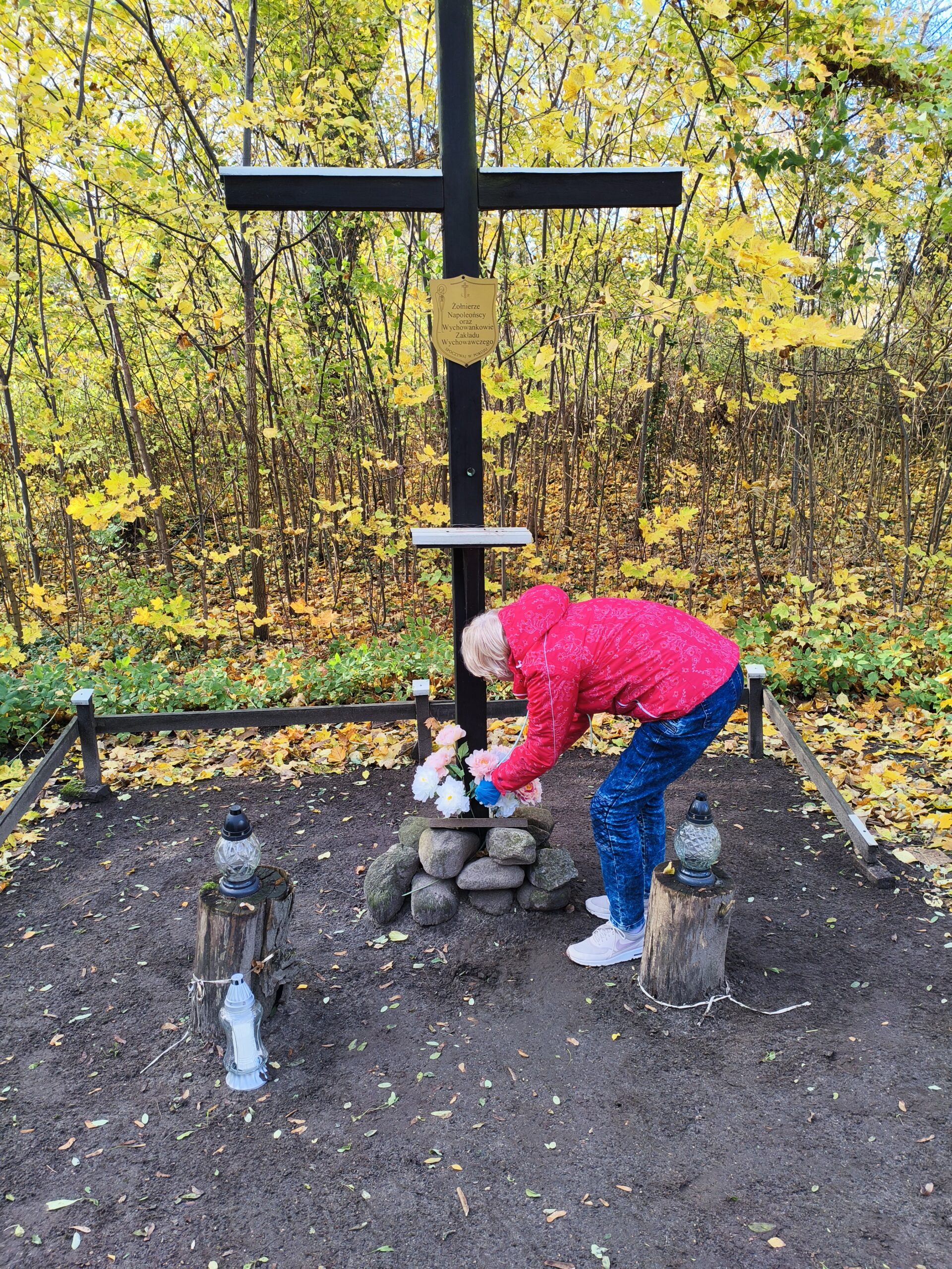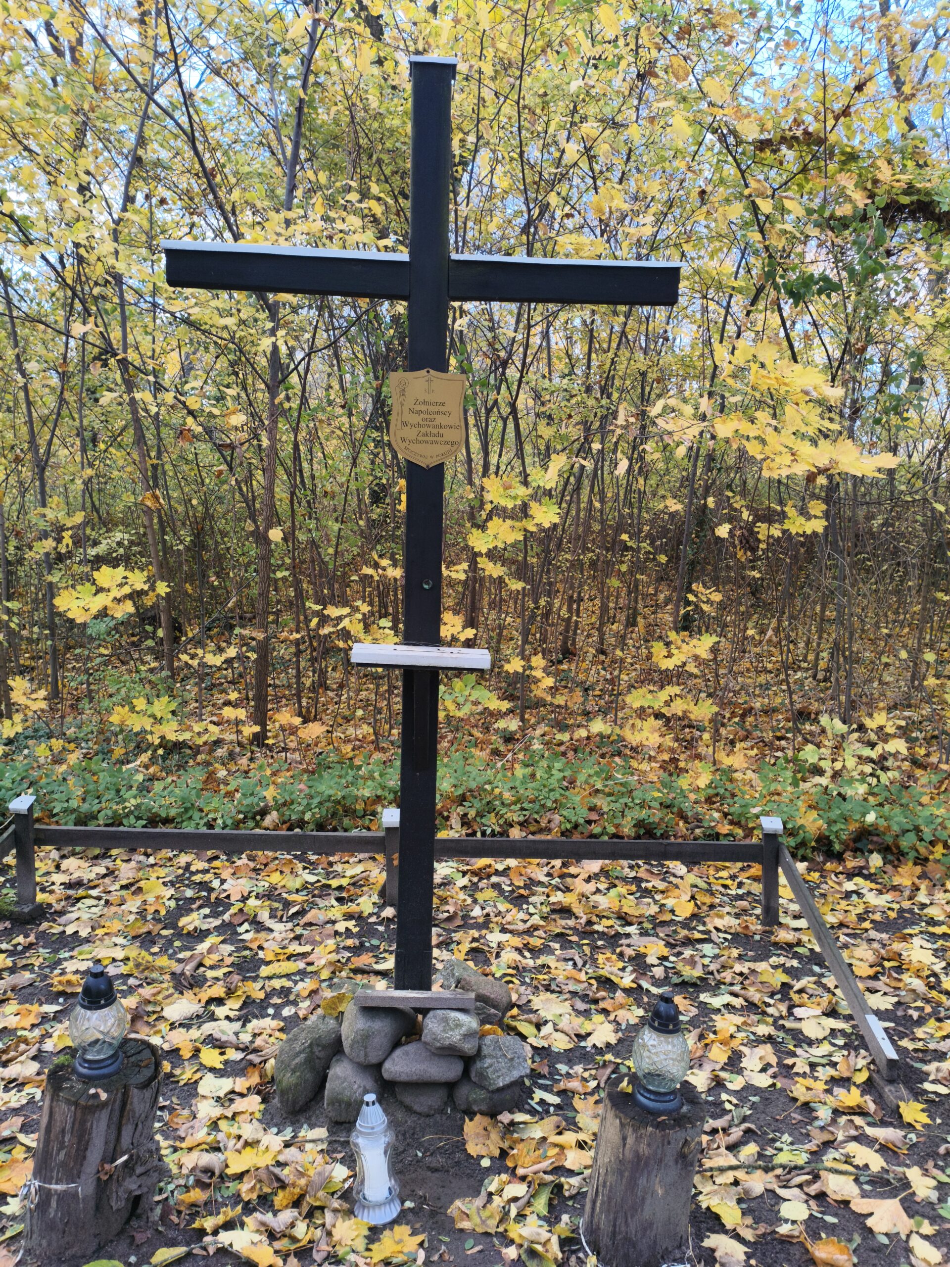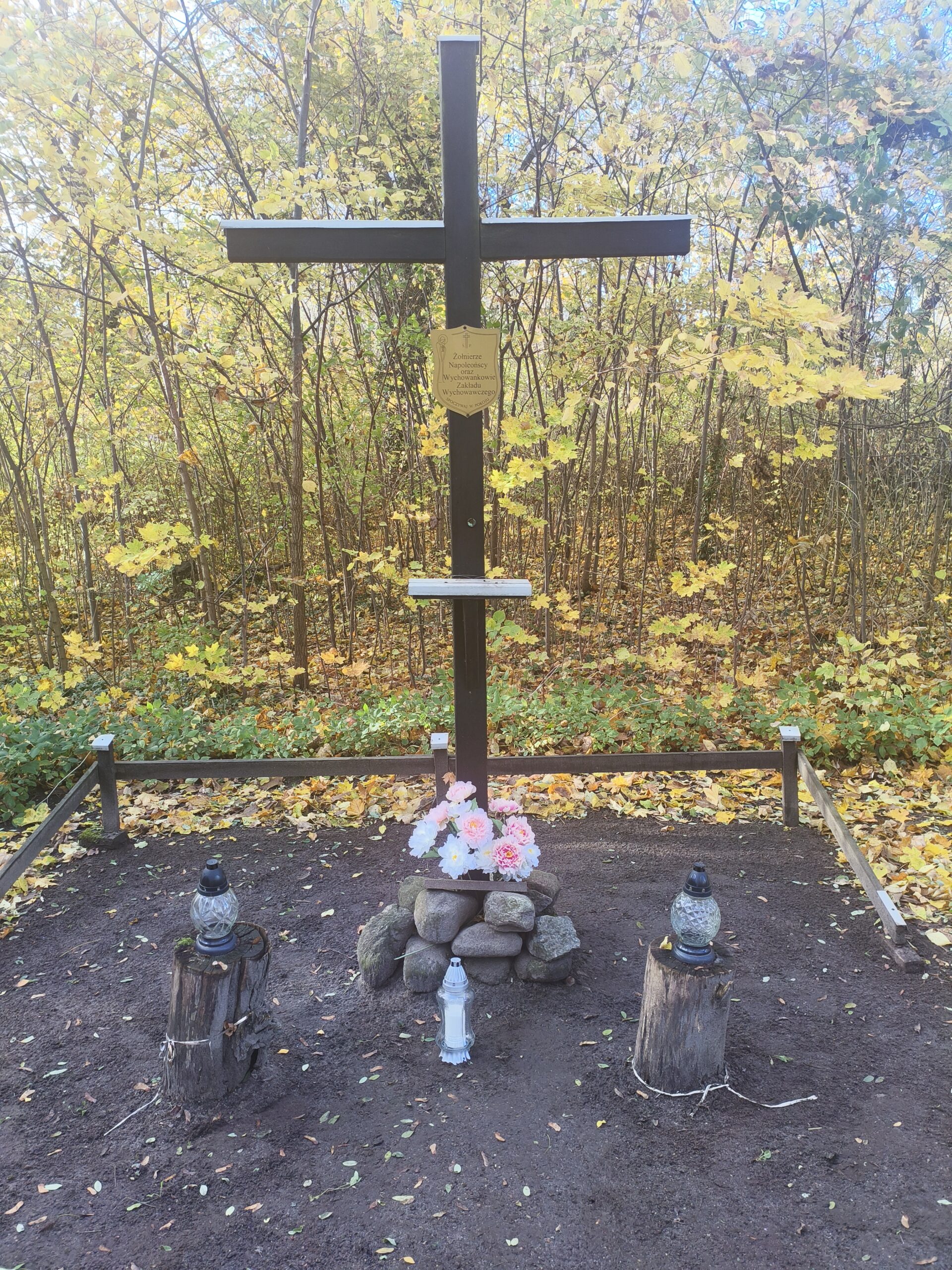 Gdy 3 września szliśmy do Doliny Śmierci, przy ulicy Igielskiej niedaleko mleczarni, zobaczyliśmy krzyż upamiętniający Żołnierzy Napoleońskich i byłych Wychowanków Zakładu Wychowawczego . Przed 1 listopada postanowiliśmy uporządkować to miejsce. I dzisiaj tu jesteśmy.